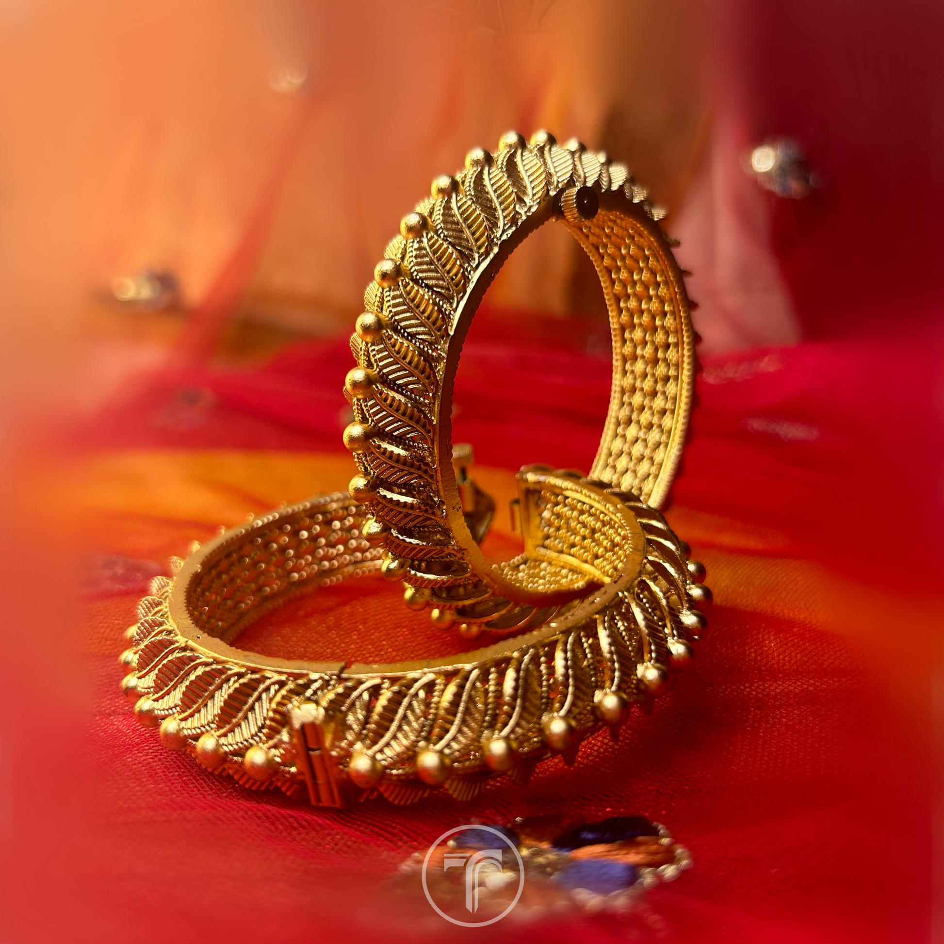 Experience elegant sophistication with The Aarella Pacheli Bangles. These stylish bangles boast exquisite craftsmanship and effortlessly make a statement. Enhance any outfit with these beautiful pairs of bangles.