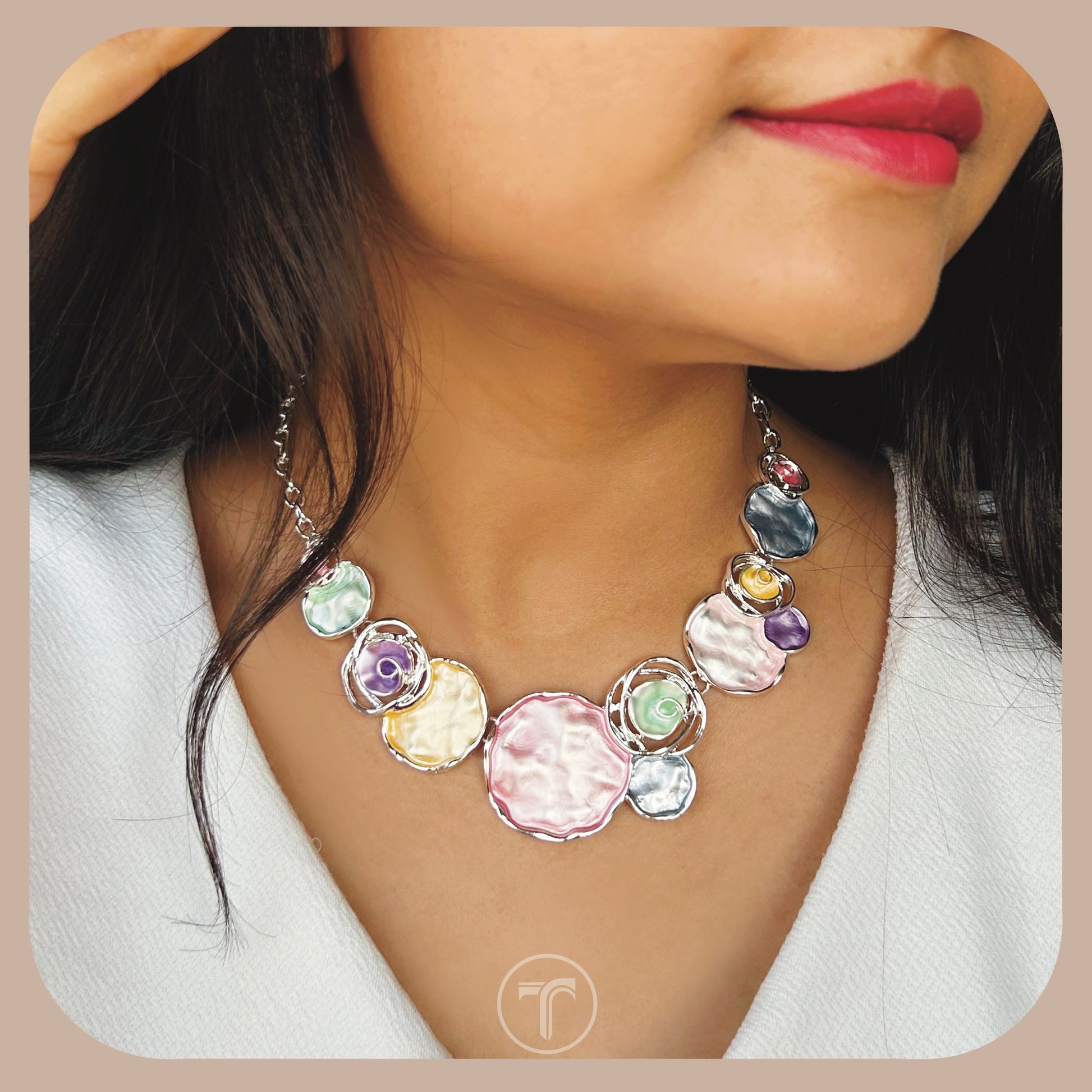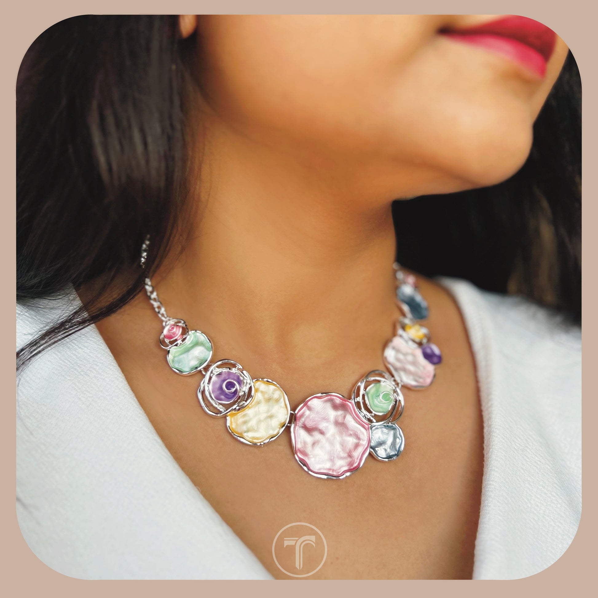 The Carrey Necklace is a bold and fashionable statement piece. Crafted with enamel, this unique necklace showcases a funky and stylish design. Elevate your look and make a statement with this eye-catching accessory.
