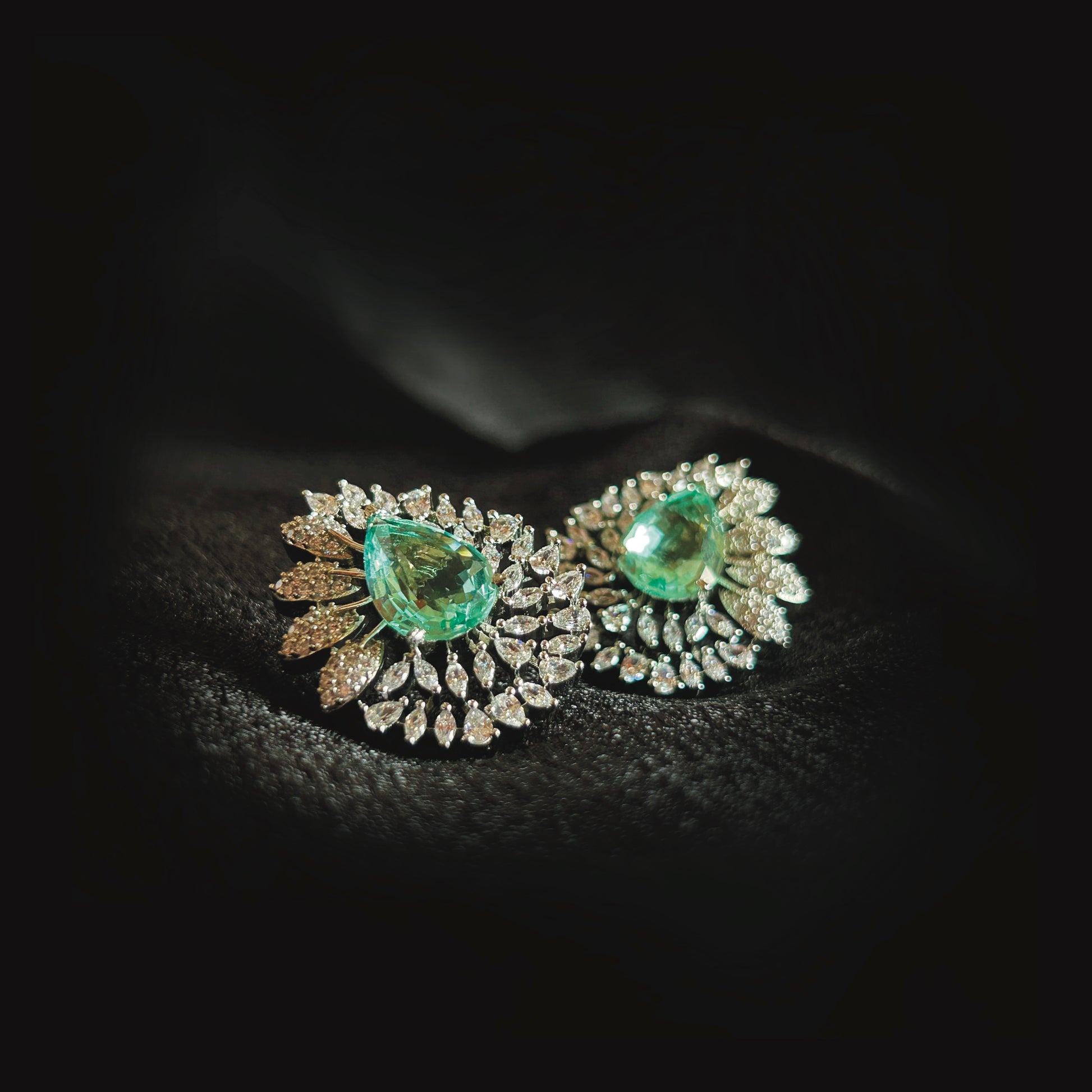 The Plume Stud Earrings add a touch of glamour and sophistication to any look. These elegant American Diamond earrings with semi precious stones bring a subtle sparkle and stylish sophistication to your ensemble. Elevate your style with the Plume Stud Earrings.